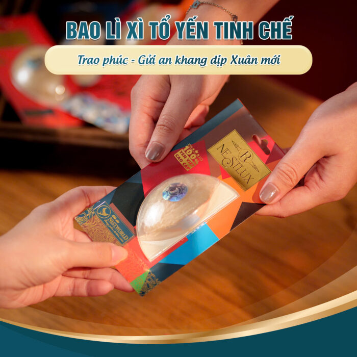 Bao lì xì tổ yến Nestworld là dòng bao lì xì đầu tiên trên thị trường Việt Nam có chứa yến sào, trở thành lựa chọn lý tưởng cho những ai muốn mừng tuổi đầu năm hoặc gửi gắm lời chúc sức khỏe vừa độc lạ vừa sang trọng, ý nghĩa.