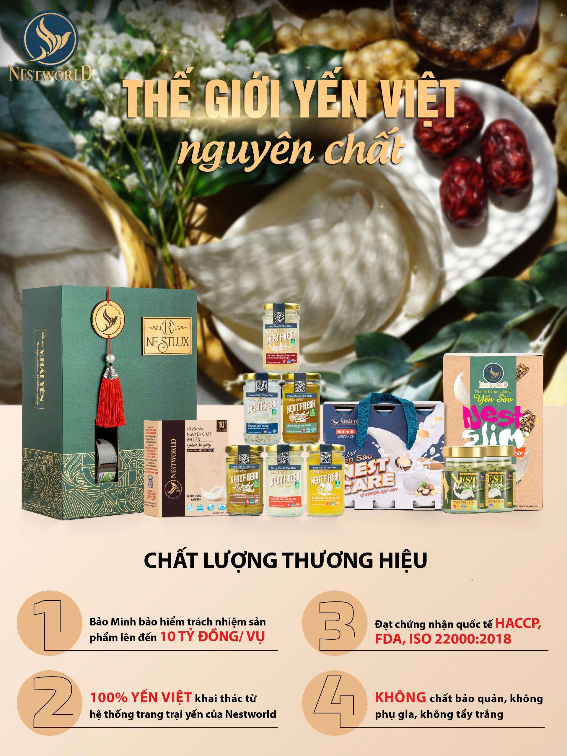 Ứng dụng công nghệ sấy thăng hoa hiện đại, sản phẩm vẫn giữ nguyên hương vị và trọn vẹn dưỡng chất có trong tổ yến nguyên chất , với nguồn nguyên liệu tổ yến Việt tự nhiên được khai thác trực tiếp từ hệ thống 40 nhà yến trên toàn quốc của Nestworld, đảm bảo 4 KHÔNG: